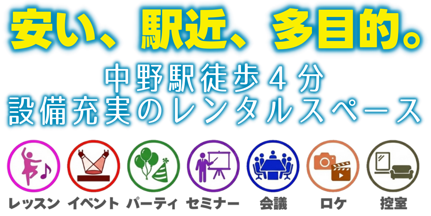 「nakano f(ナカノエフ)」はJR中野駅から徒歩4分。好立地のレンタルスペース&スタジオです。